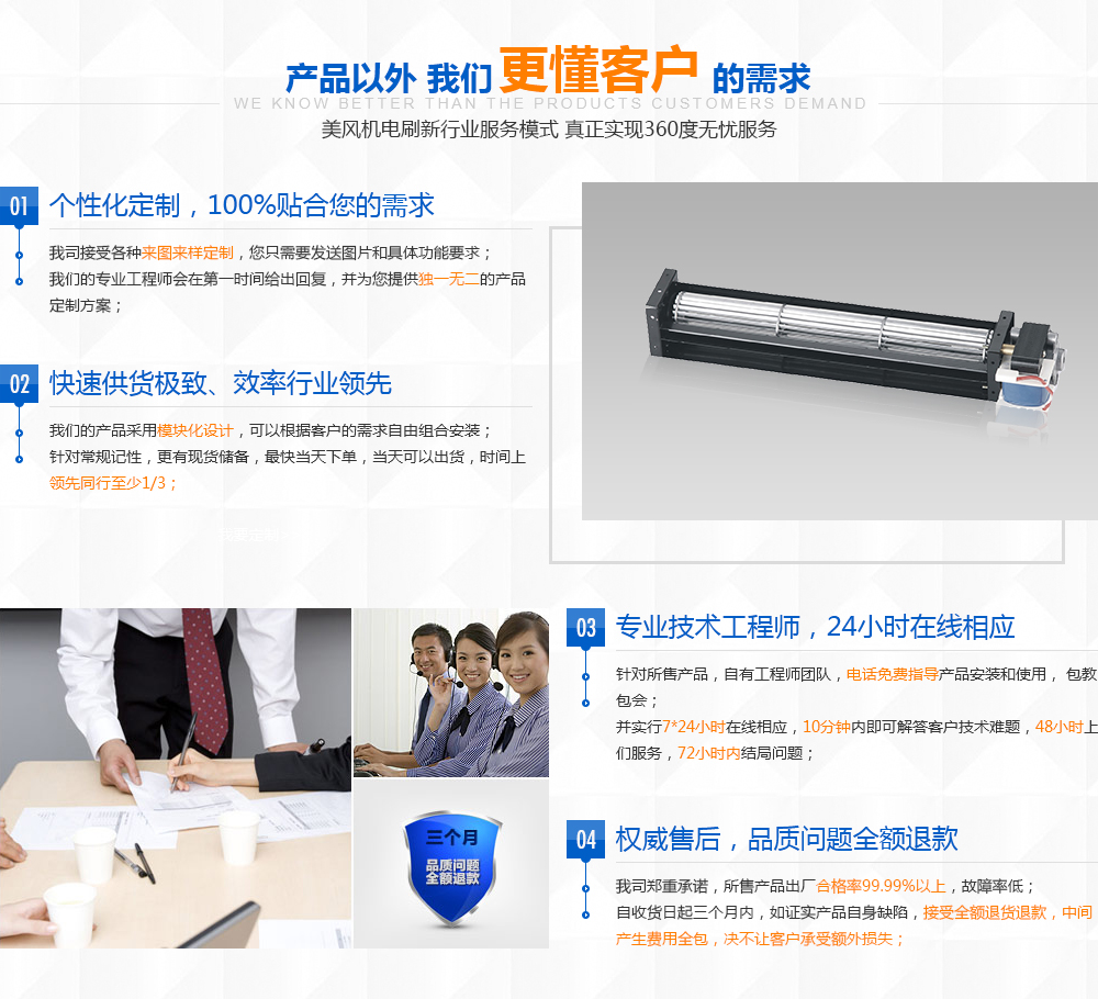個(gè)性化定制:公司可根據(jù)客戶要求定做各種特殊功能風(fēng)機(jī)